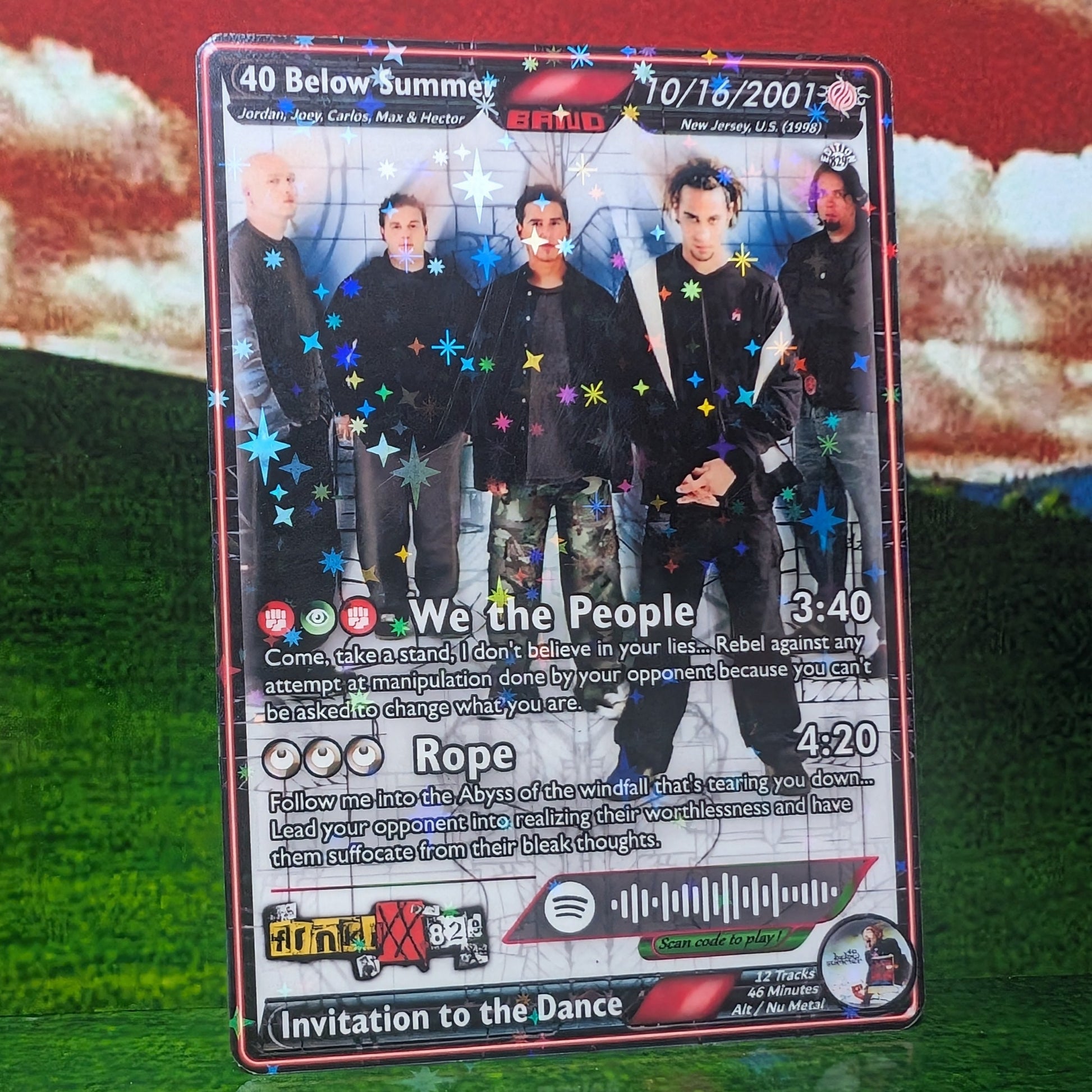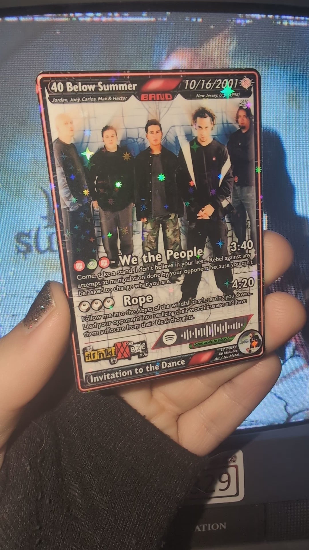Features working Spotify code that when scanned, plays a song shown on the card!