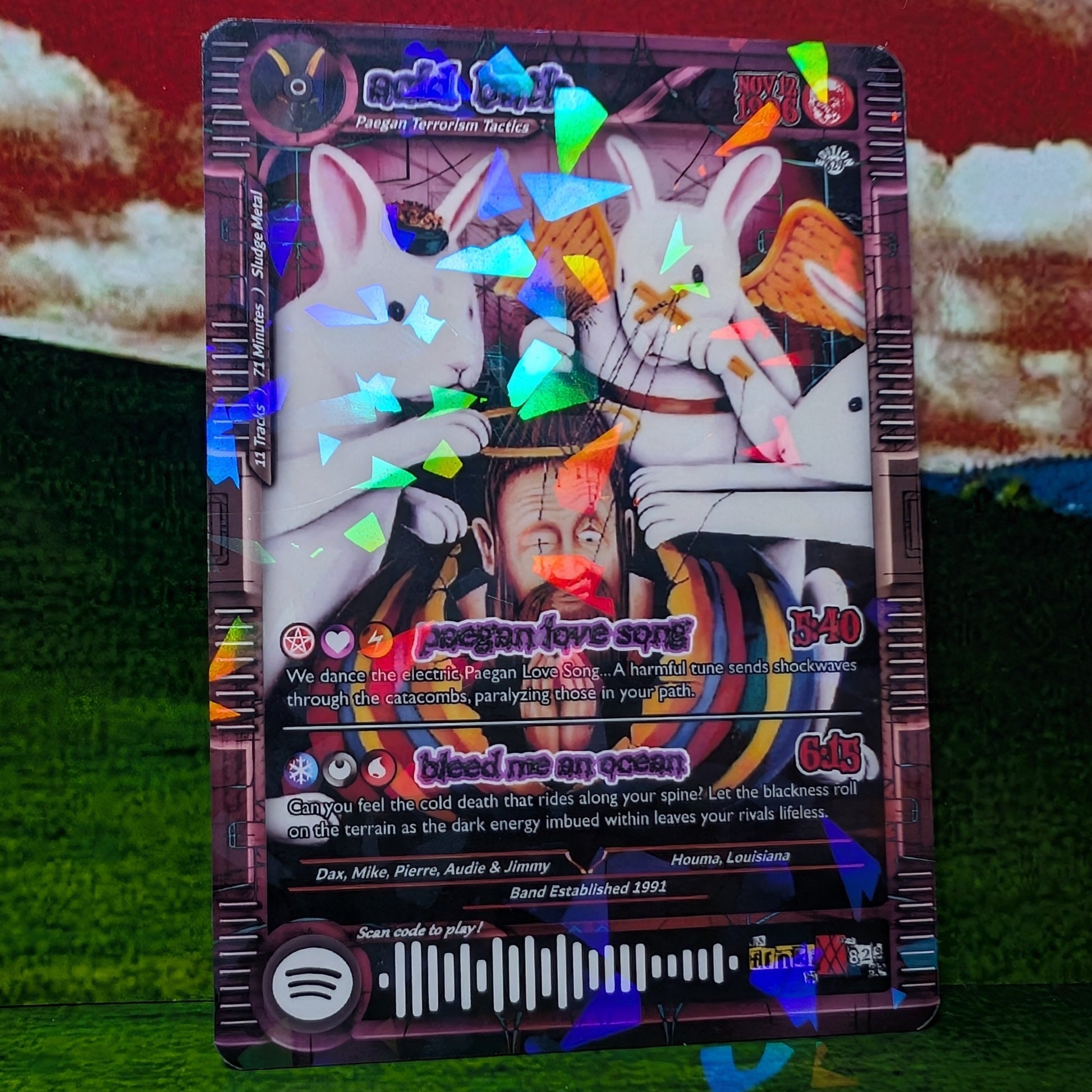 Features working Spotify code that when scanned, plays a song shown on the card!