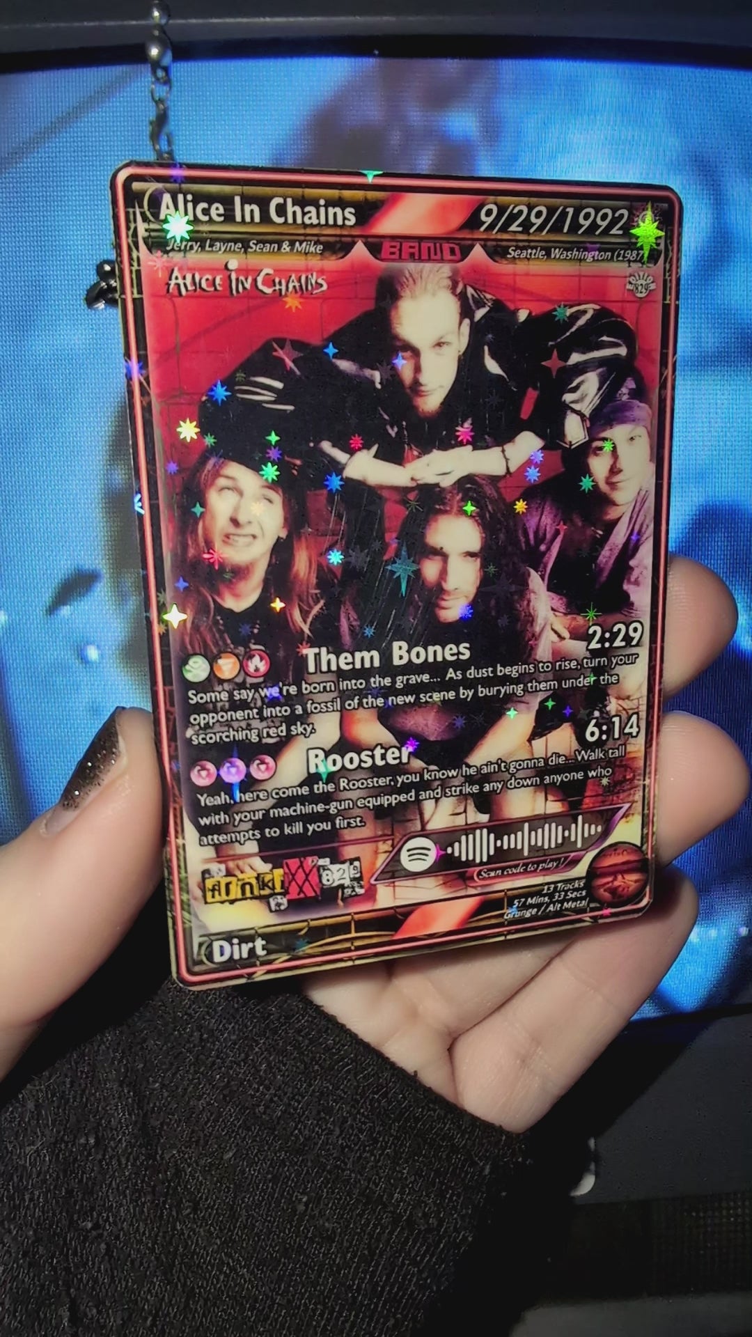 Features working Spotify code that when scanned, plays a song shown on the card!