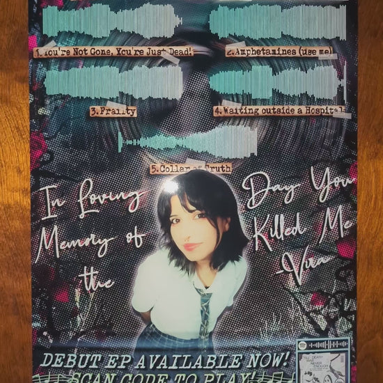 Features working Spotify code that when scanned, plays a song shown on the poster!