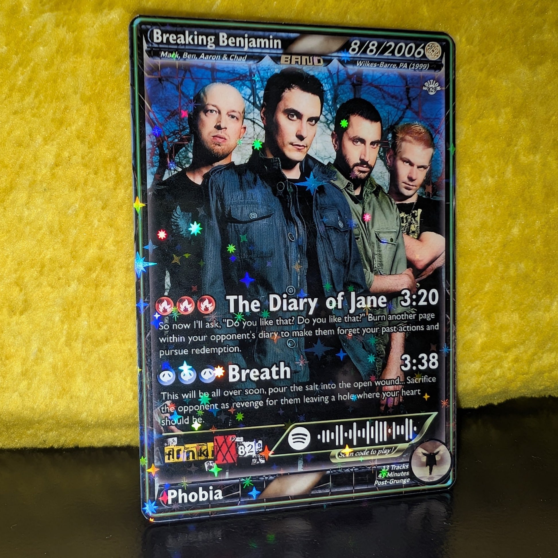 Features working Spotify code that when scanned, plays a song shown on the card!