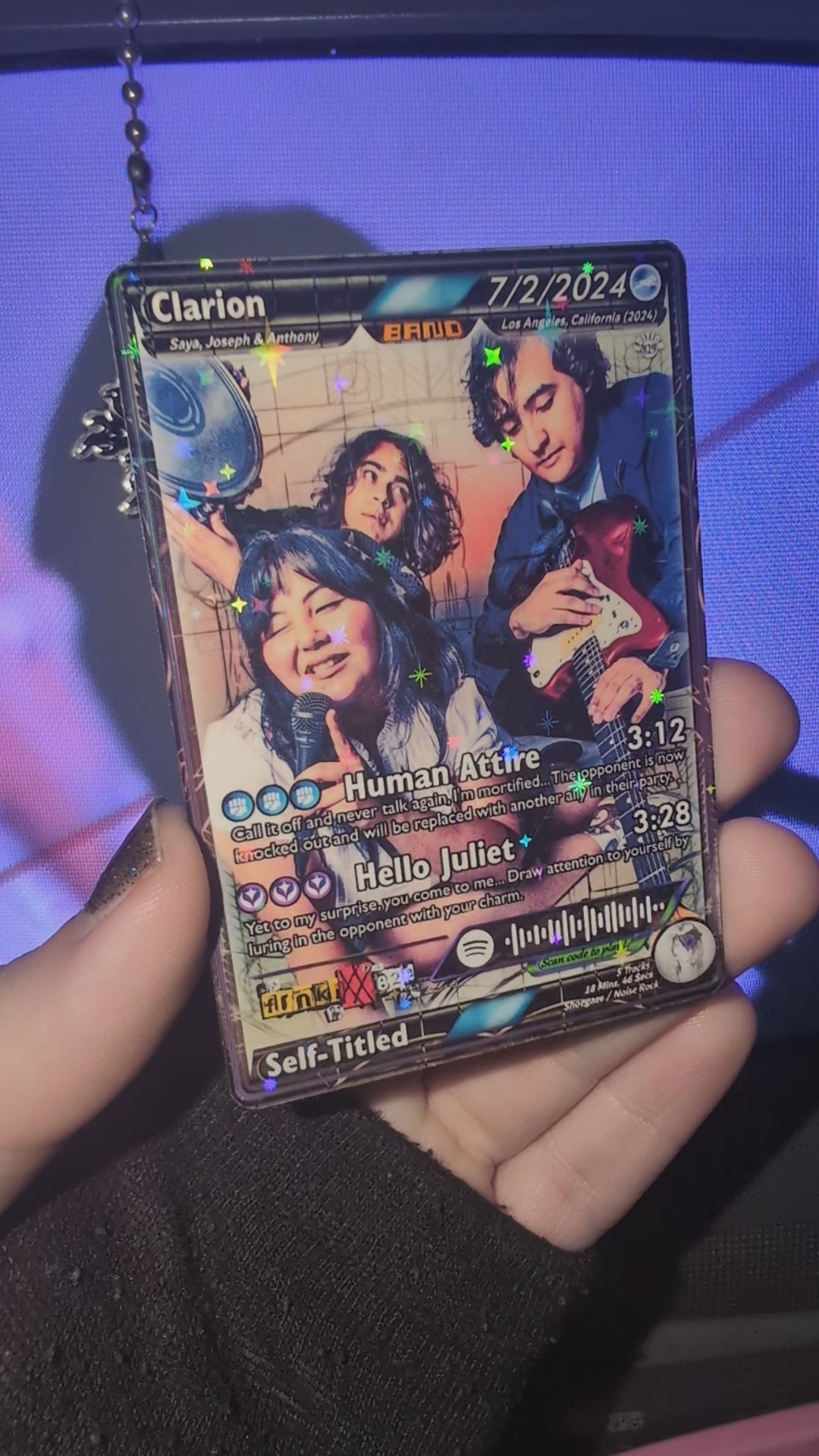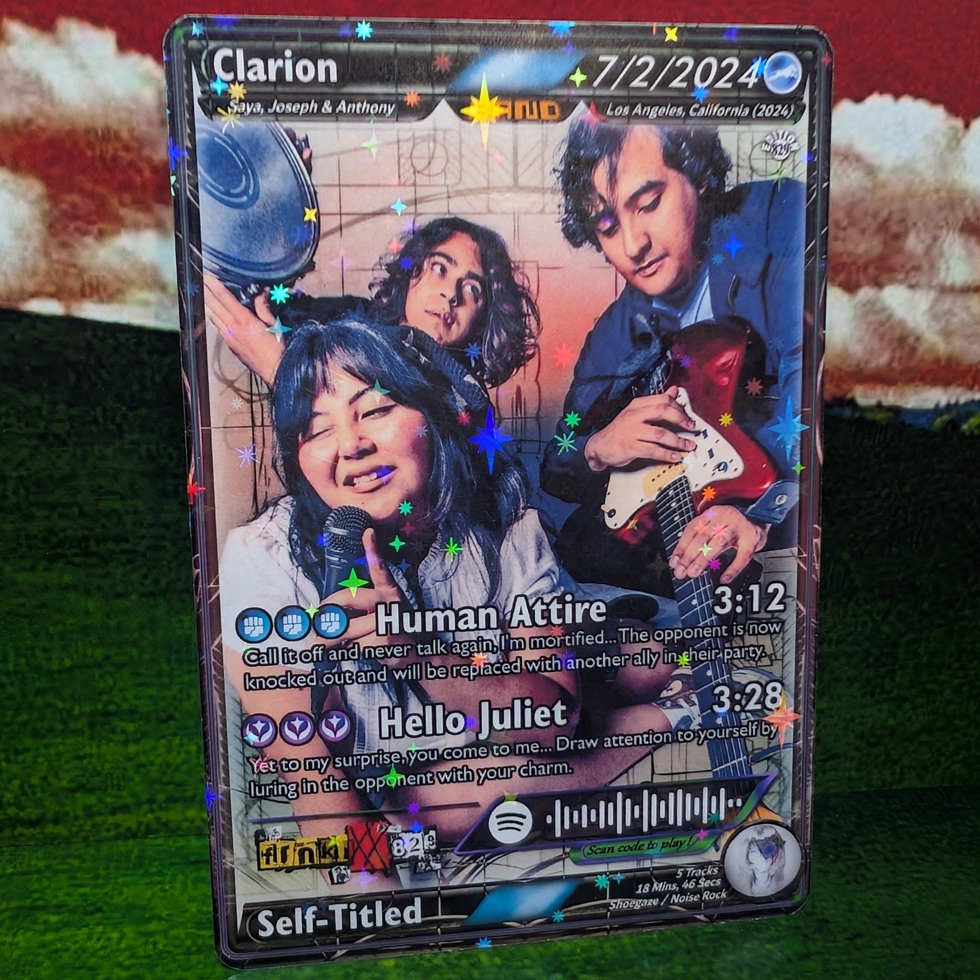 Features working Spotify code that when scanned, plays a song shown on the card!