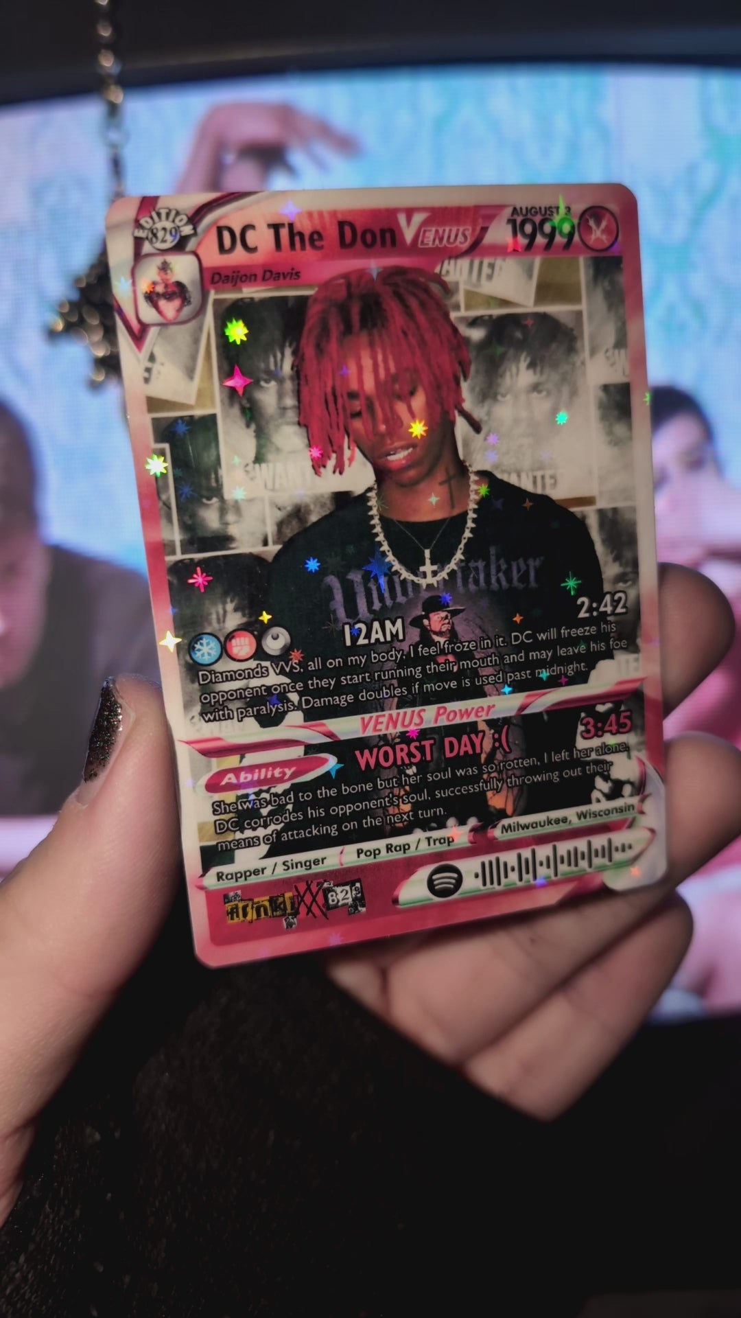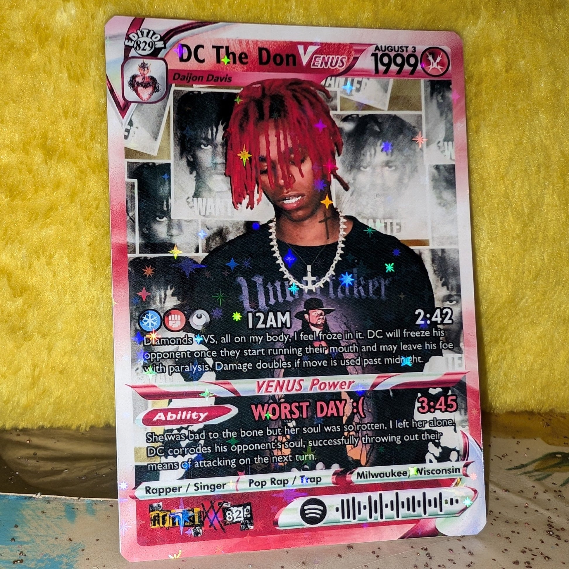 Features working Spotify code that when scanned, plays a song shown on the card!