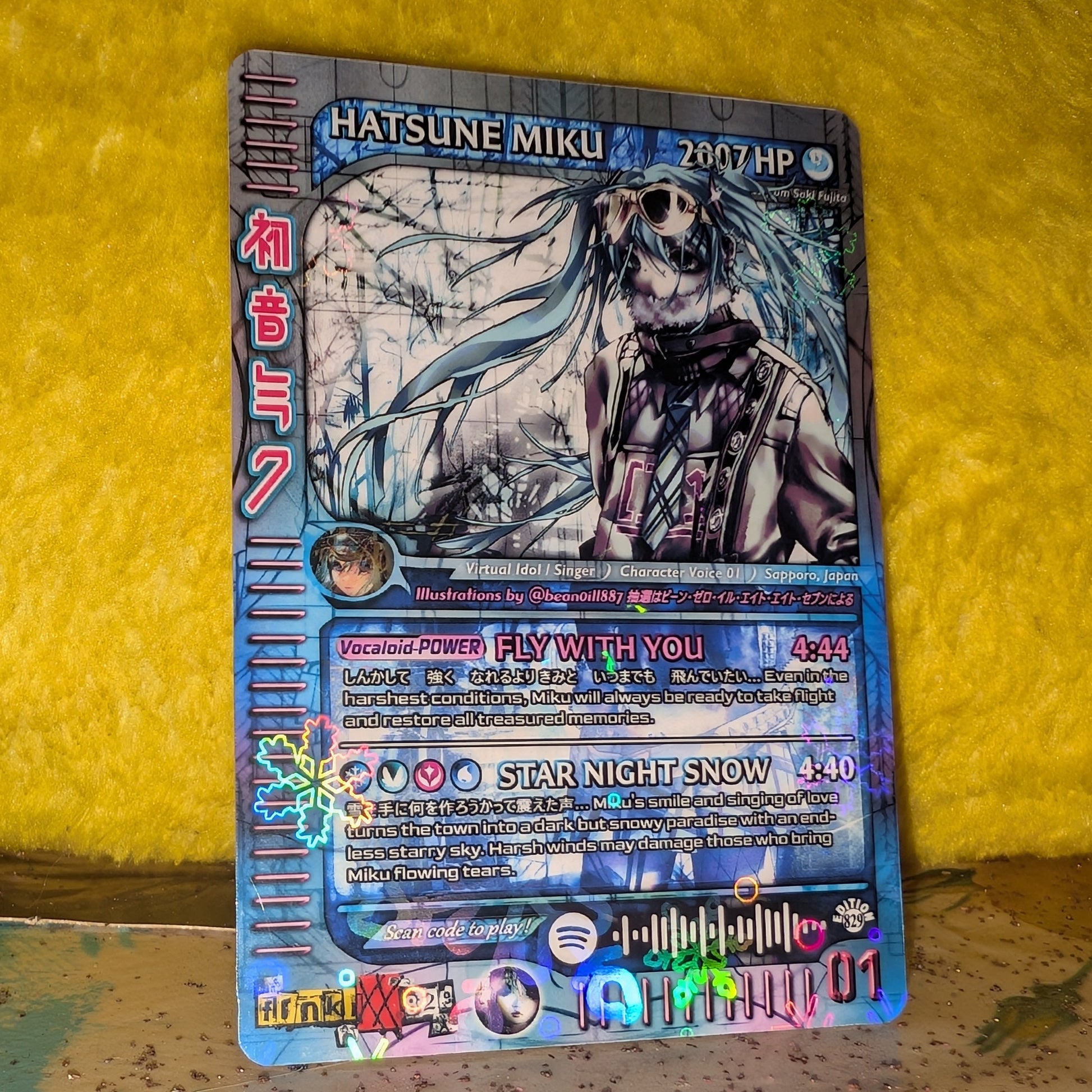Features working Spotify code that when scanned, plays a song shown on the card!