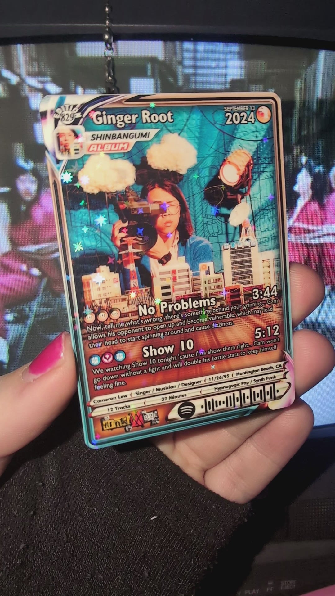 Features working Spotify code that when scanned, plays a song shown on the card!