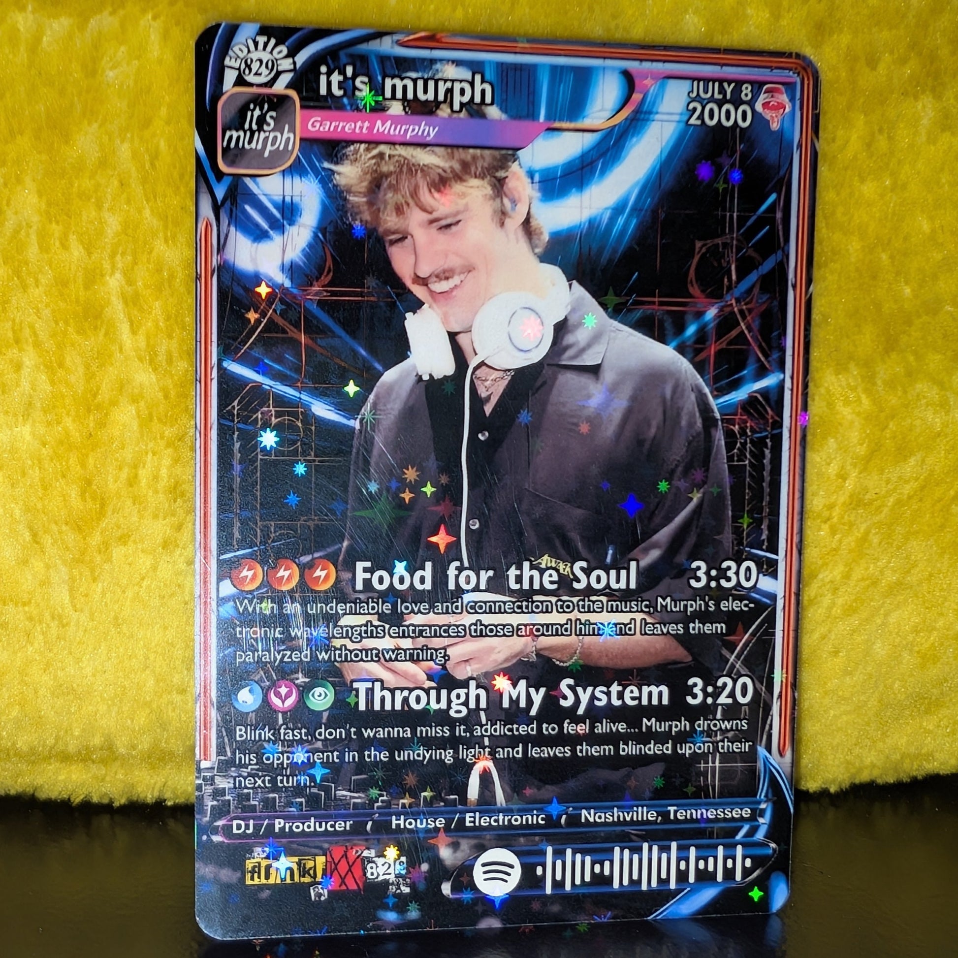 Features working Spotify code that when scanned, plays a song shown on the card!