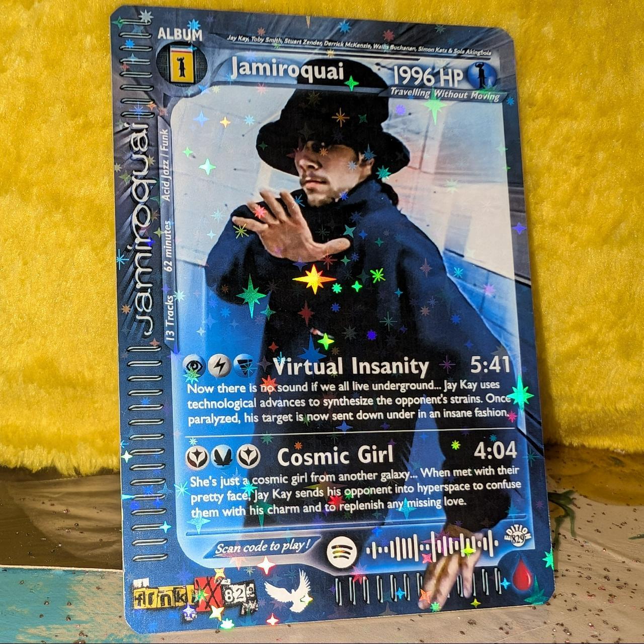 Features working Spotify code that when scanned, plays a song shown on the card!