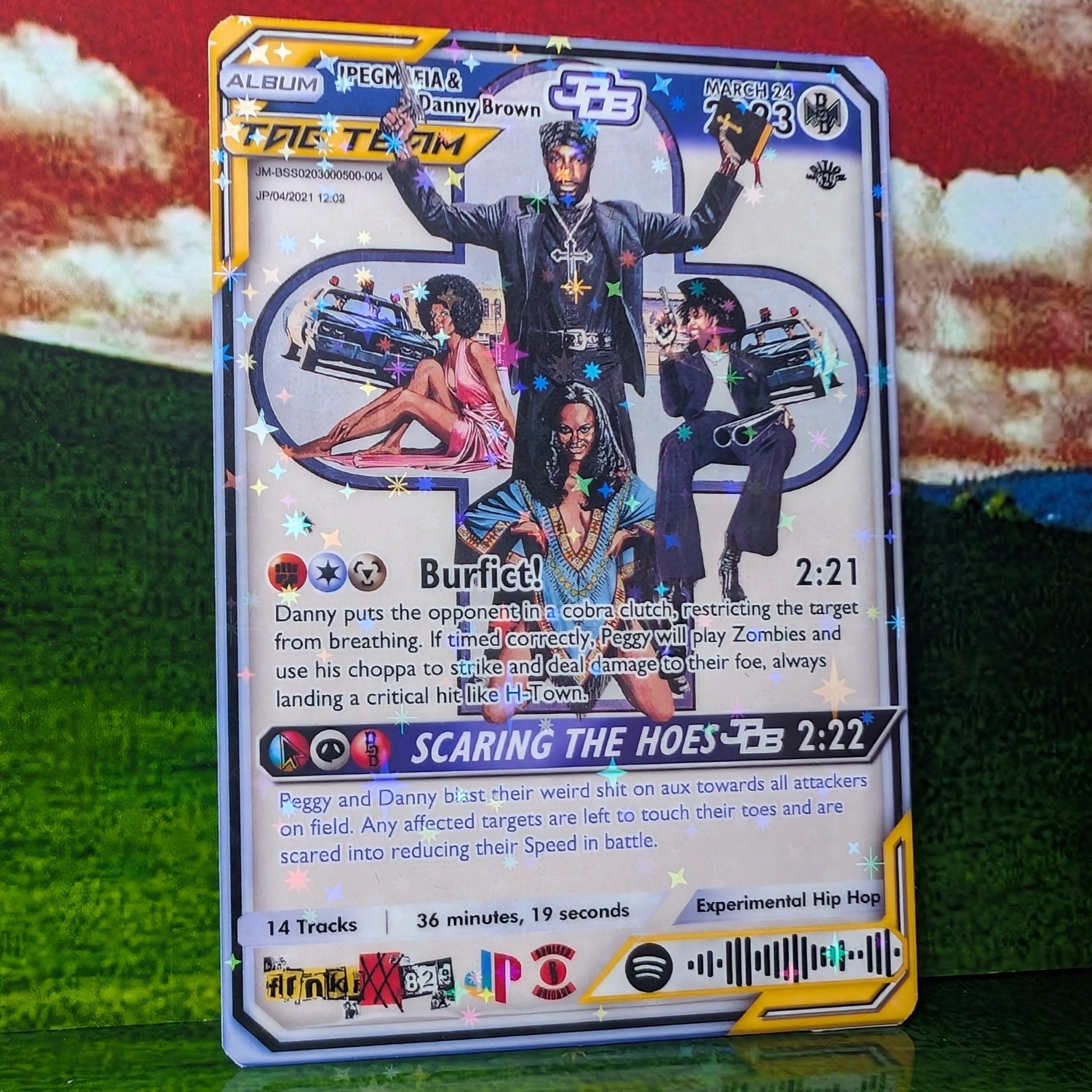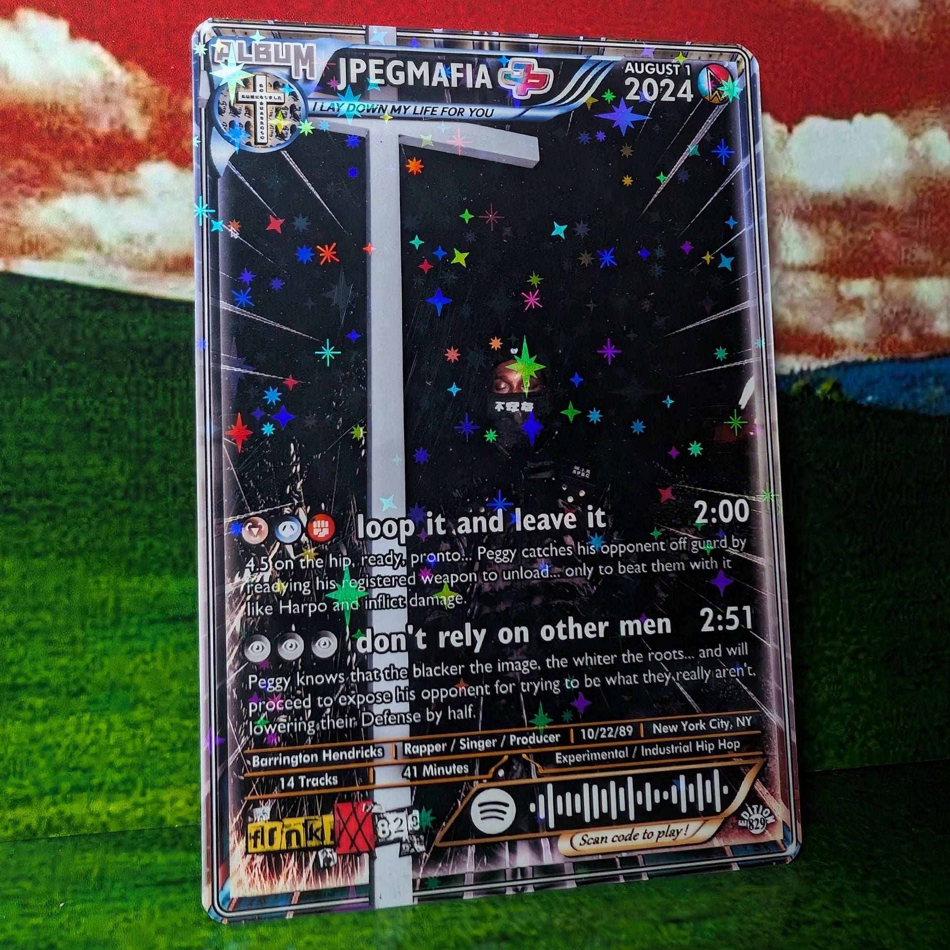 Features working Spotify code that when scanned, plays a song shown on the card!