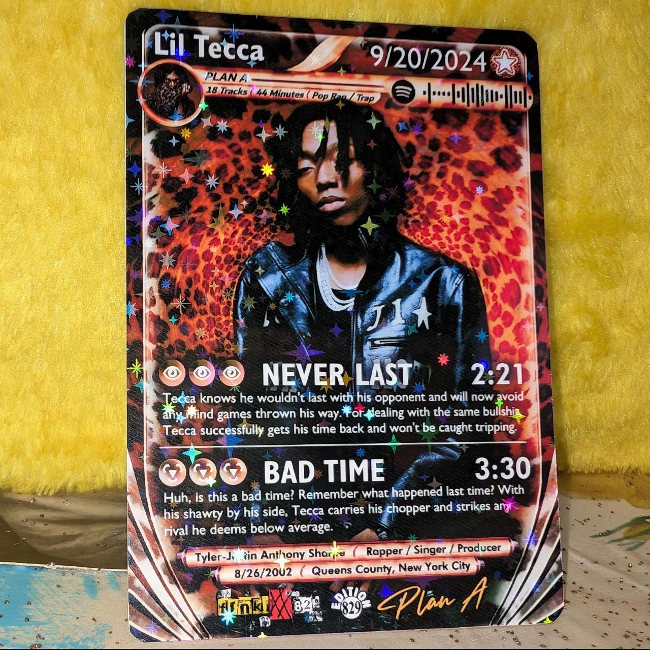 Features working Spotify code that when scanned, plays a song shown on the card!