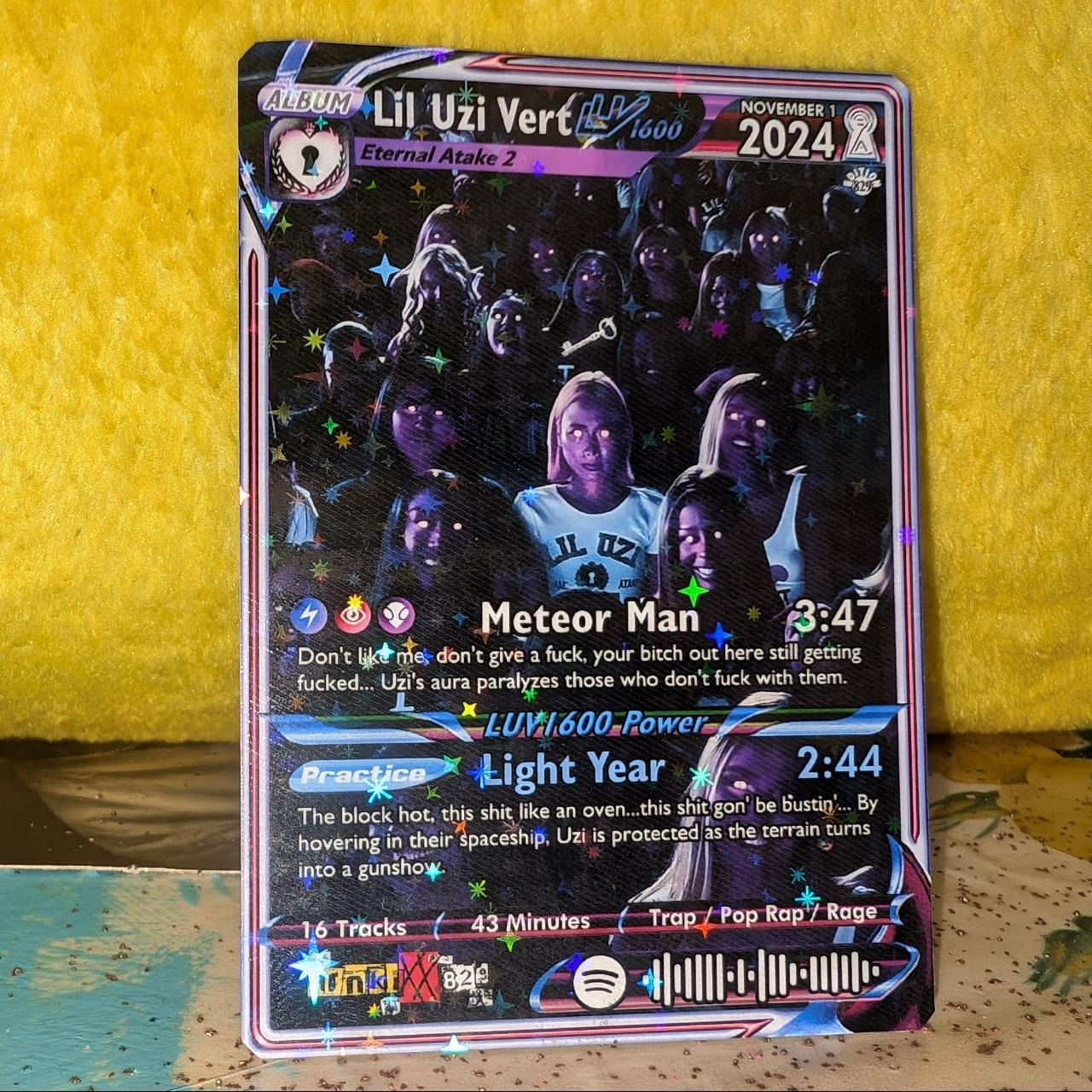 Features working Spotify code that when scanned, plays a song shown on the card!