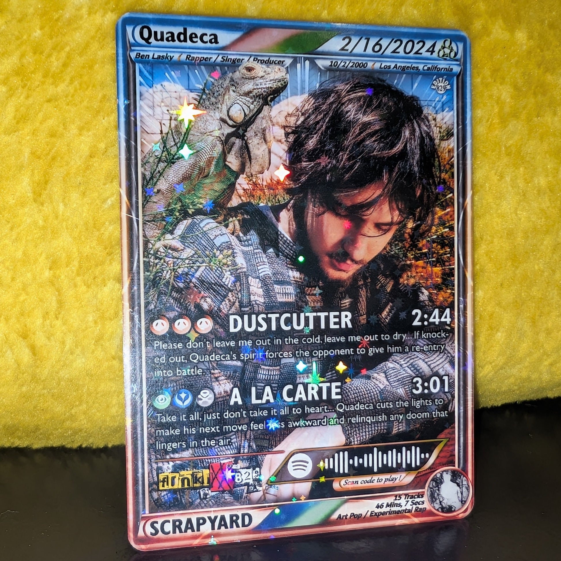 Features working Spotify code that when scanned, plays a song shown on the card!