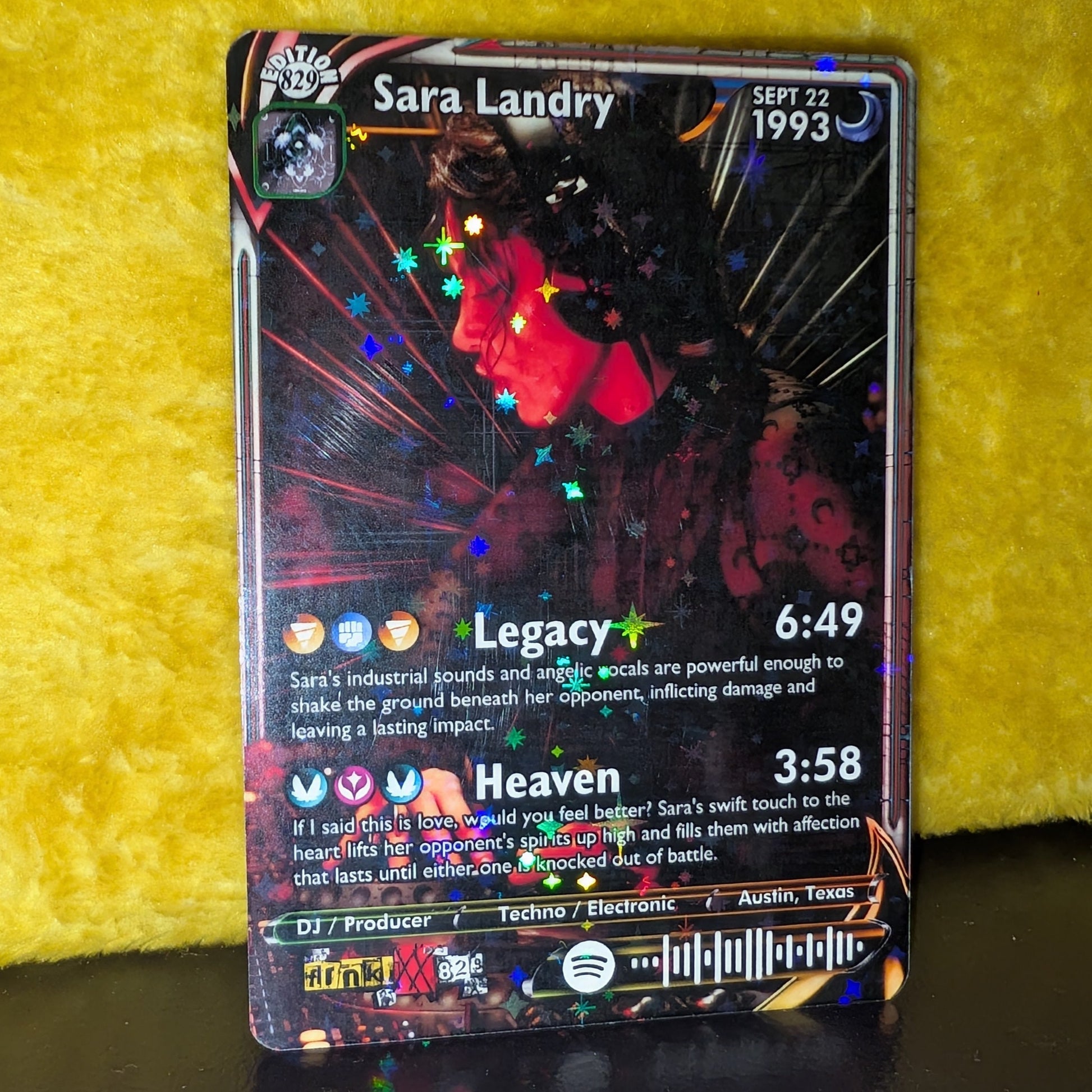 Features working Spotify code that when scanned, plays a song shown on the card!