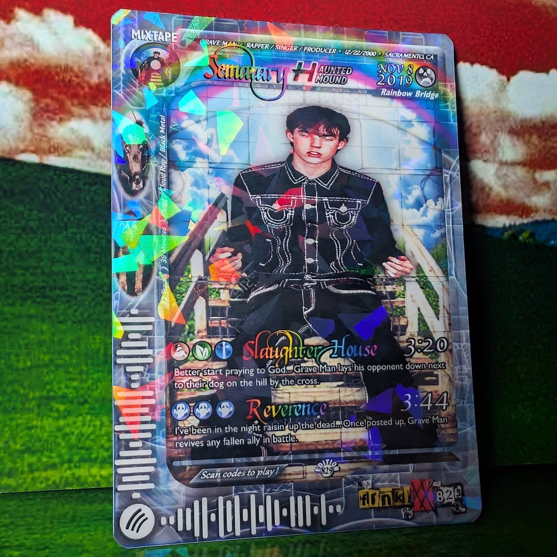 Features working Spotify code that when scanned, plays a song shown on the card!