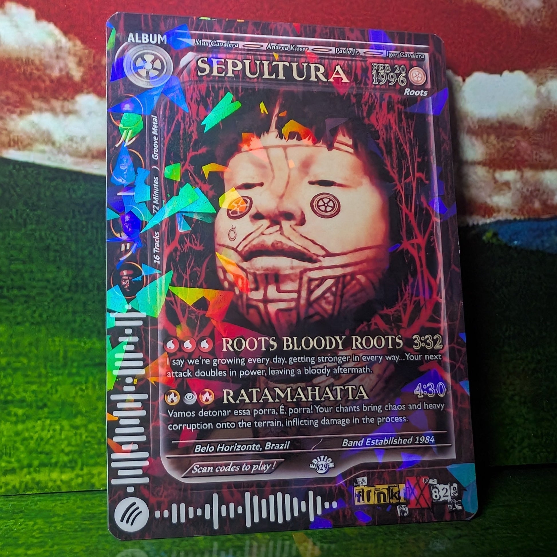 Features working Spotify code that when scanned, plays a song shown on the card!