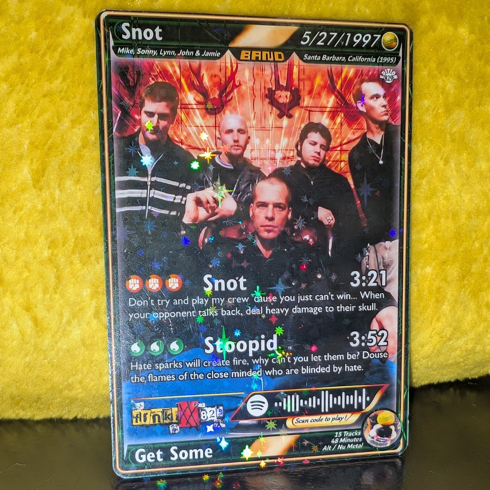 Features working Spotify code that when scanned, plays a song shown on the card!