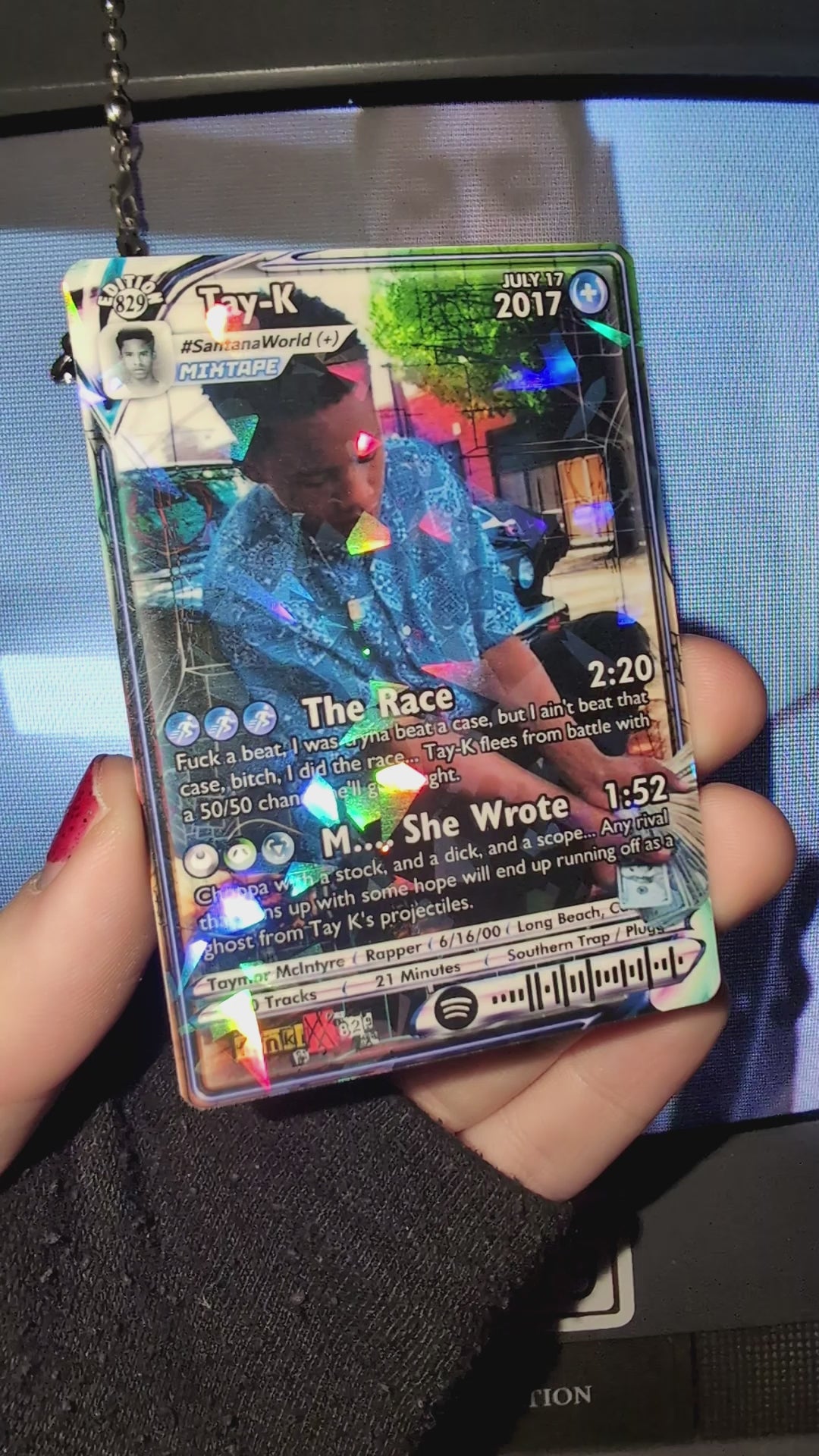Features working Spotify code that when scanned, plays a song shown on the card!