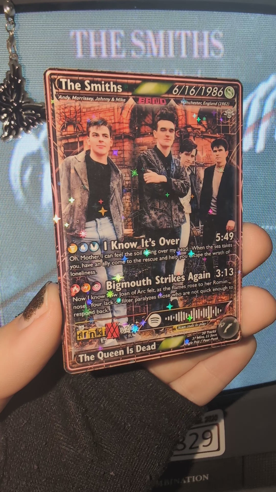 Features working Spotify code that when scanned, plays a song shown on the card!