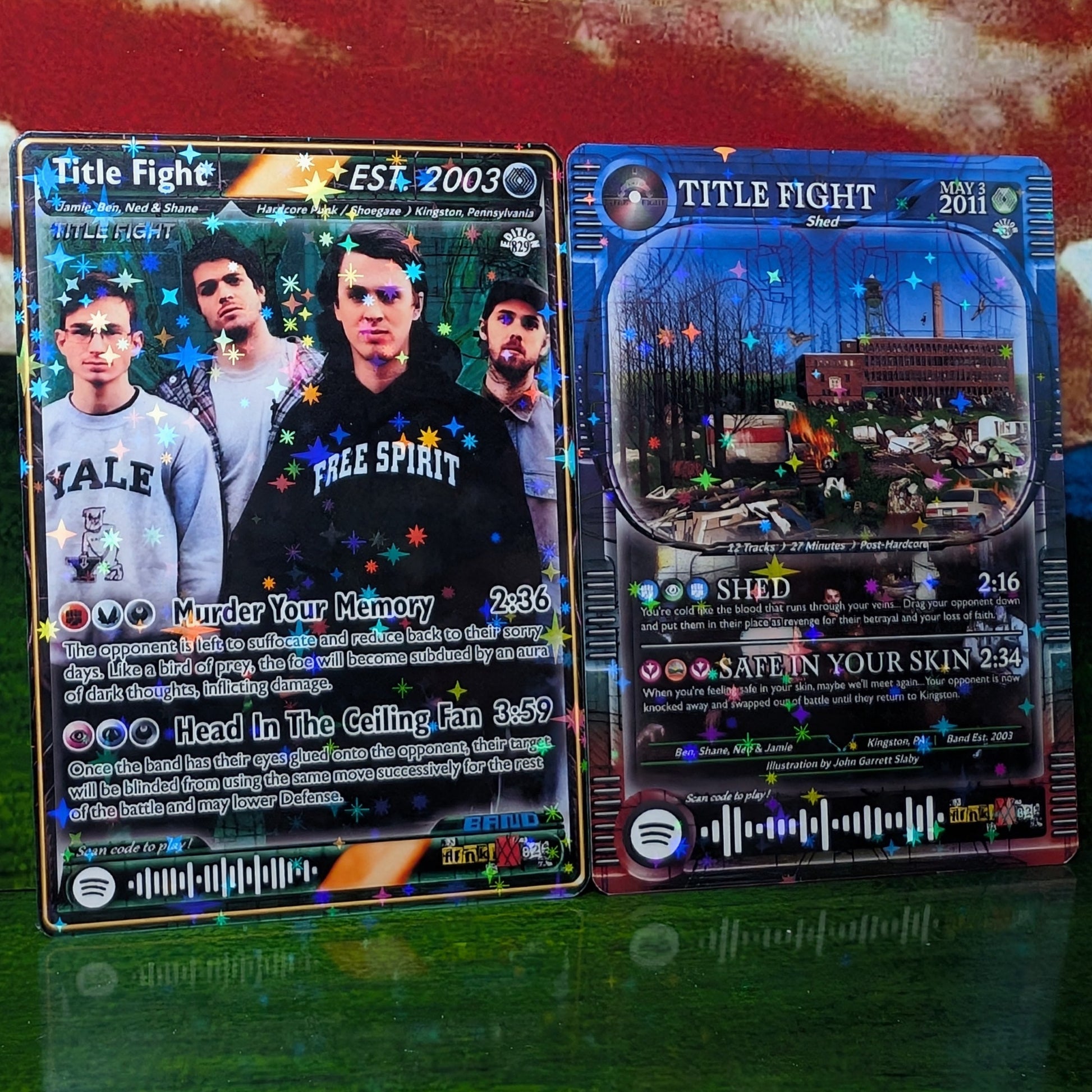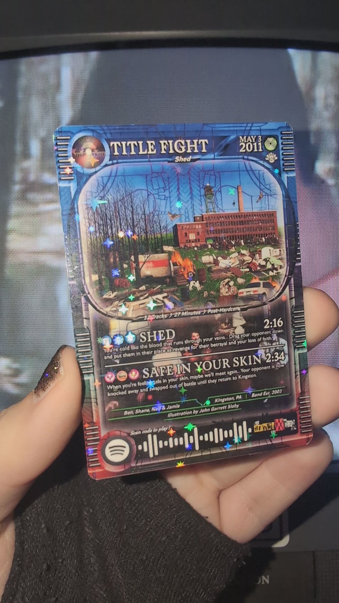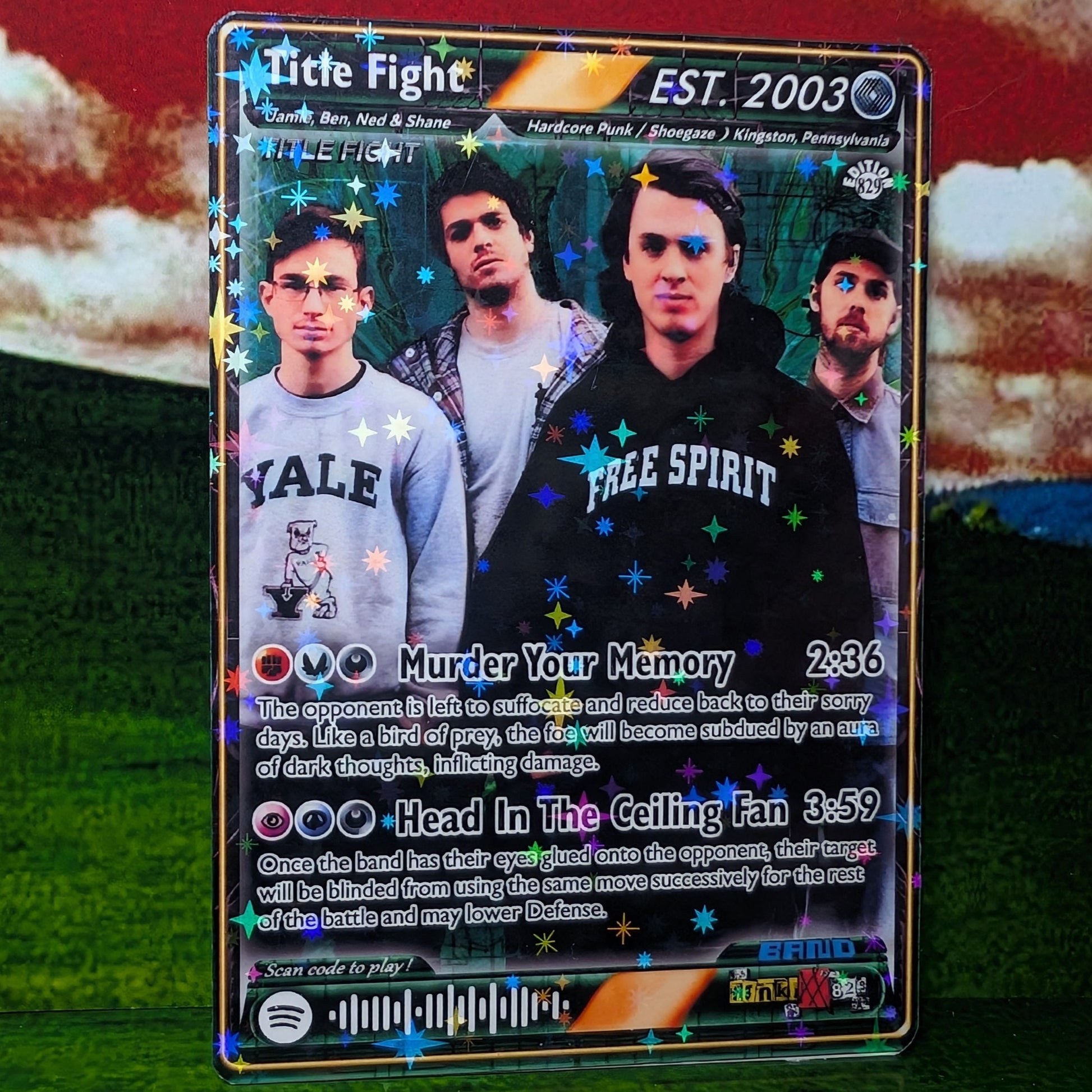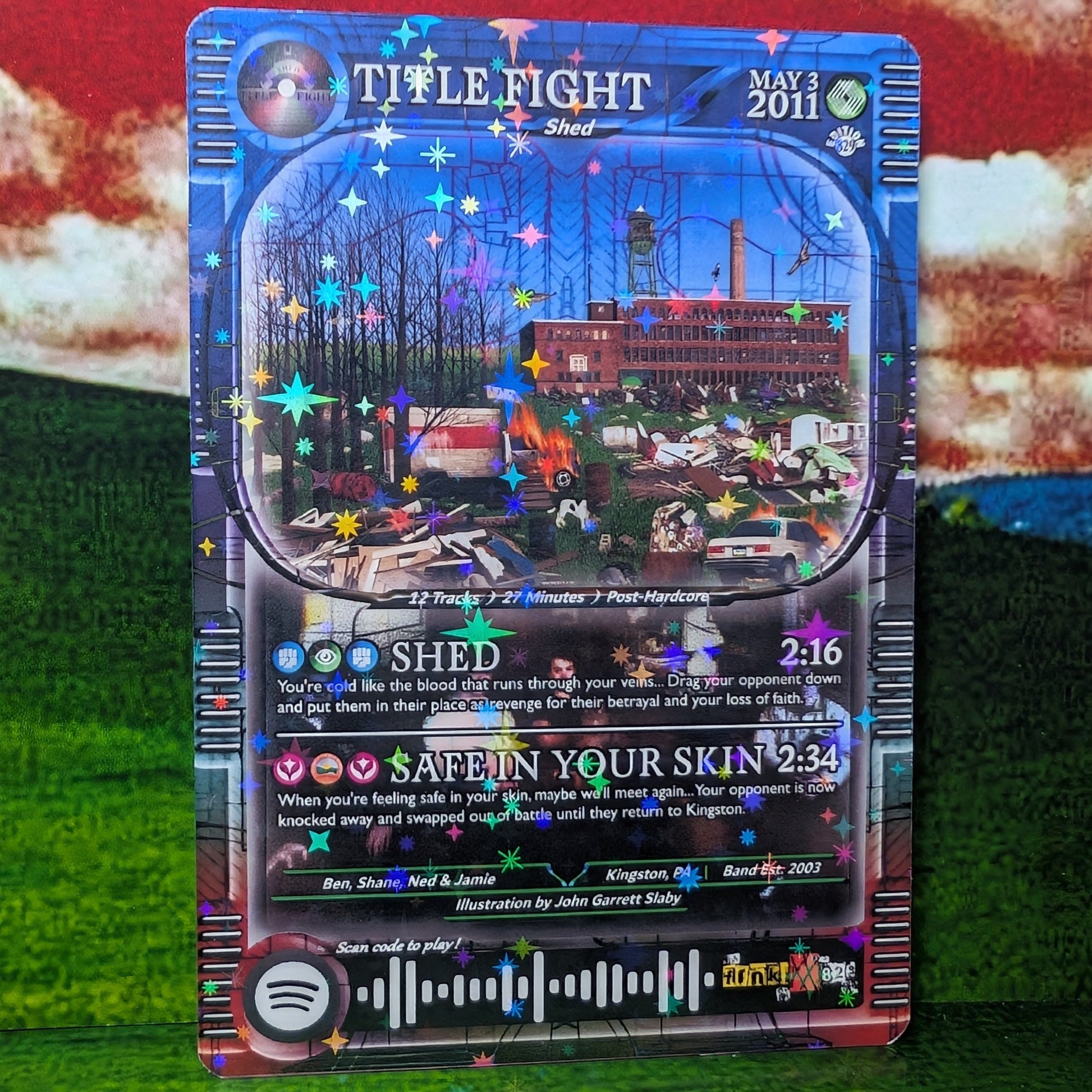 Features working Spotify code that when scanned, plays a song shown on the card!