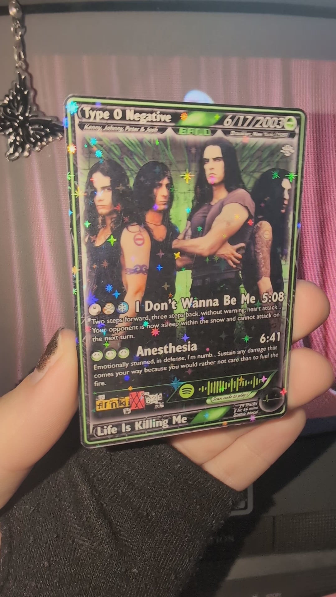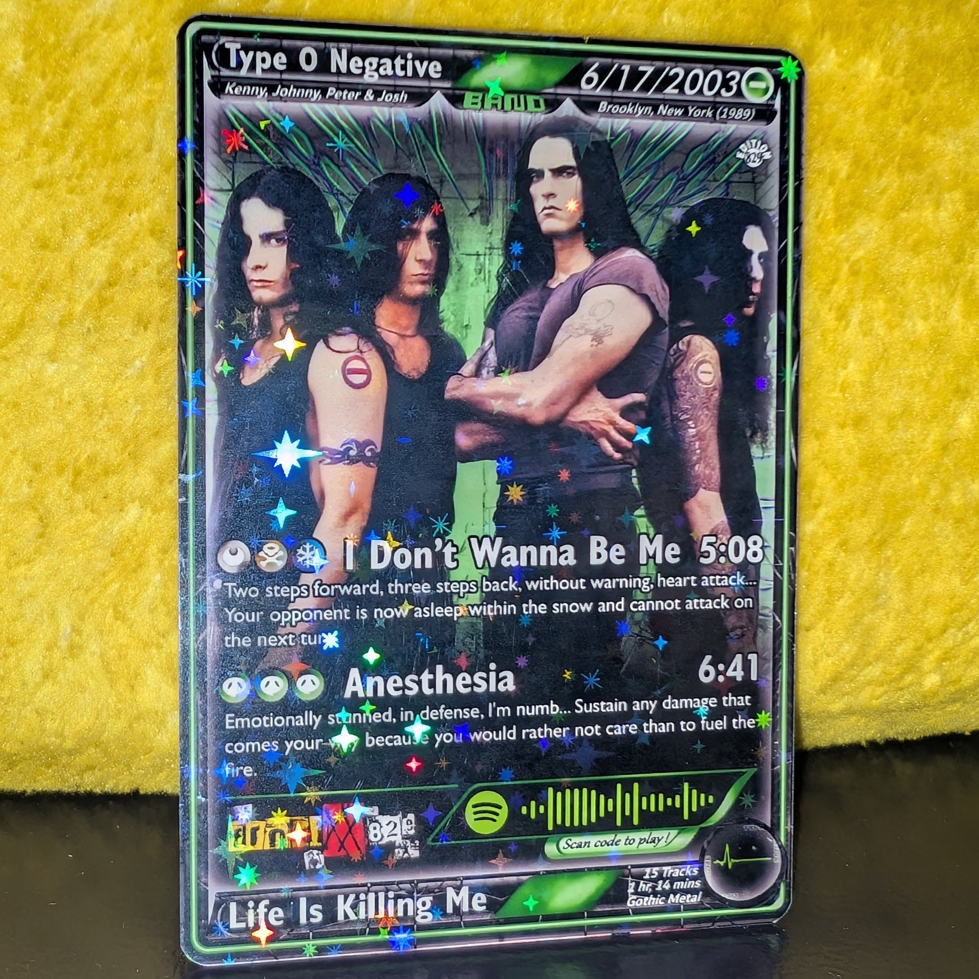 Features working Spotify code that when scanned, plays a song shown on the card!