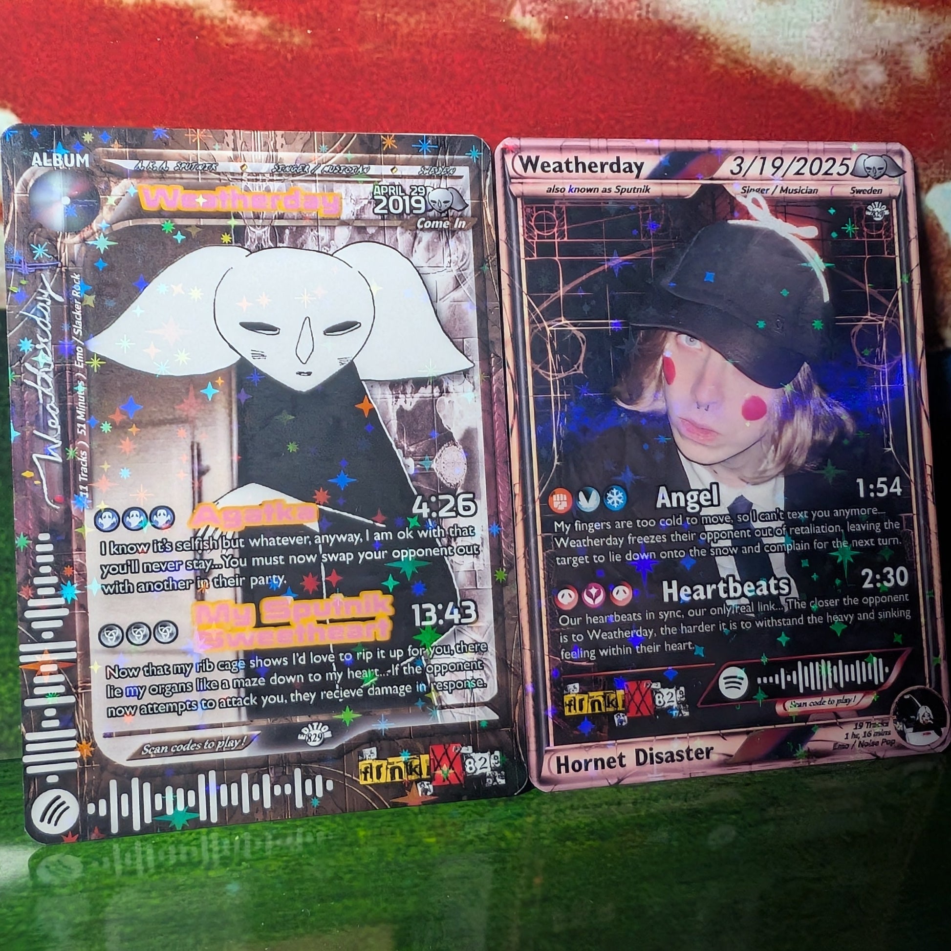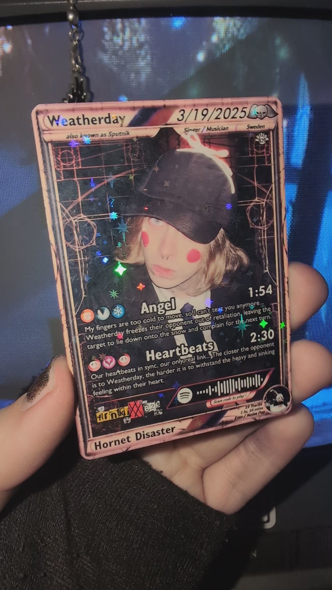 Features working Spotify code that when scanned, plays a song shown on the card!