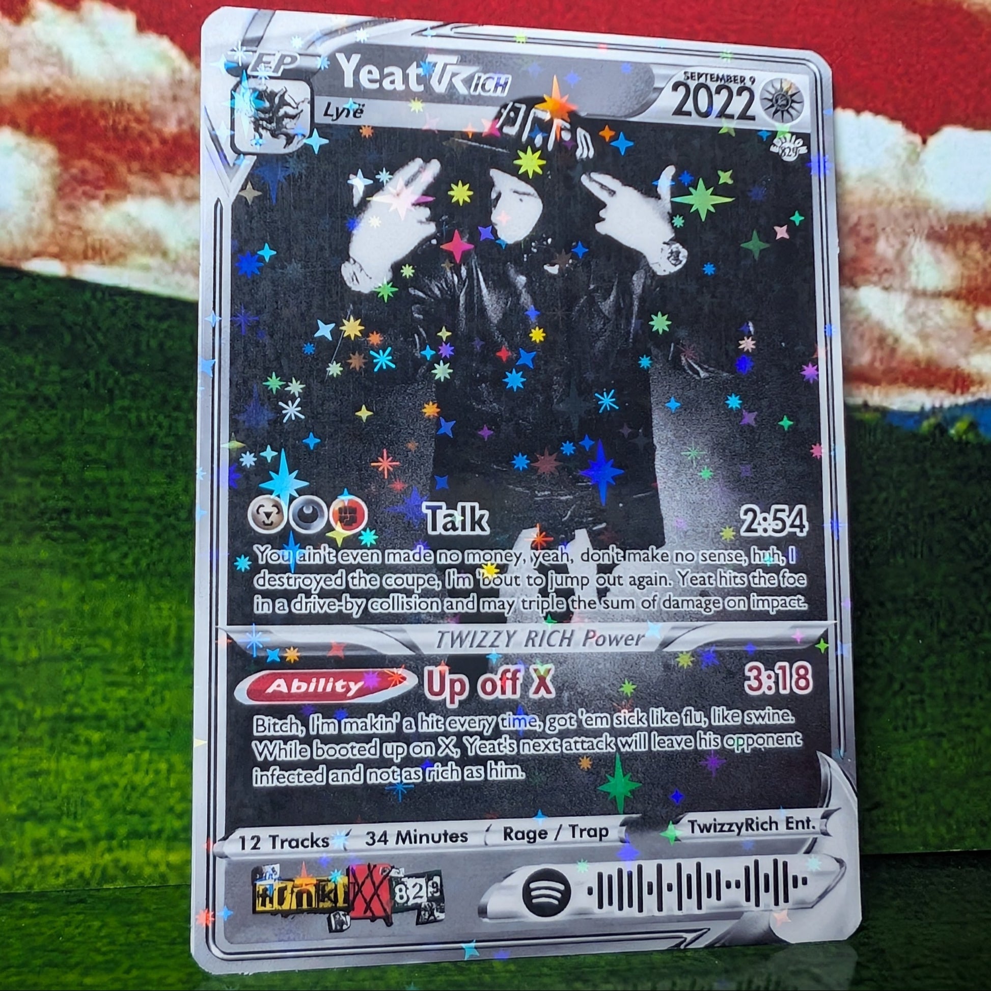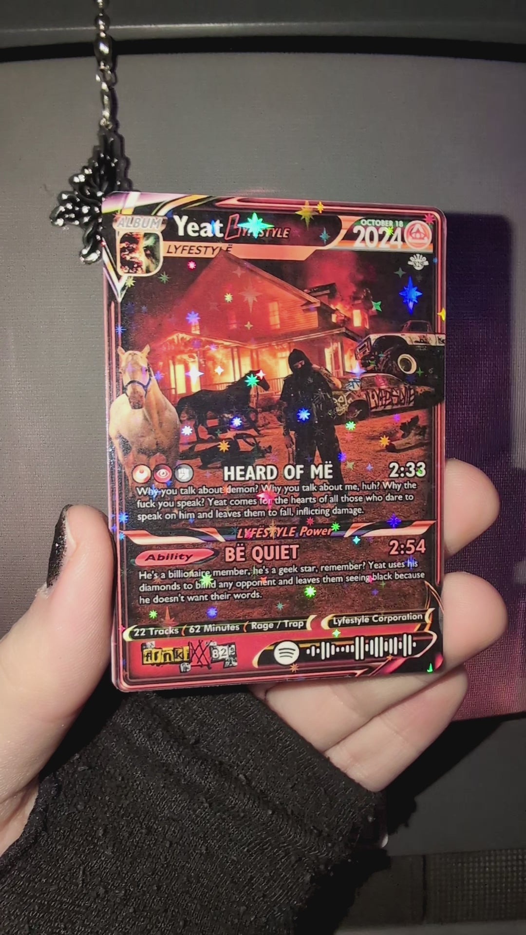 Features working Spotify code that when scanned, plays a song shown on the card!